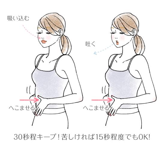 1.お腹をぎゅっとへこませる *おへそが背骨に近づくように